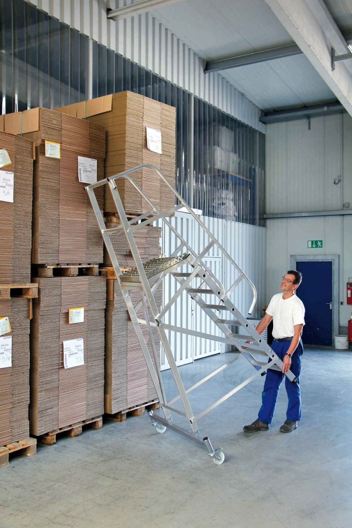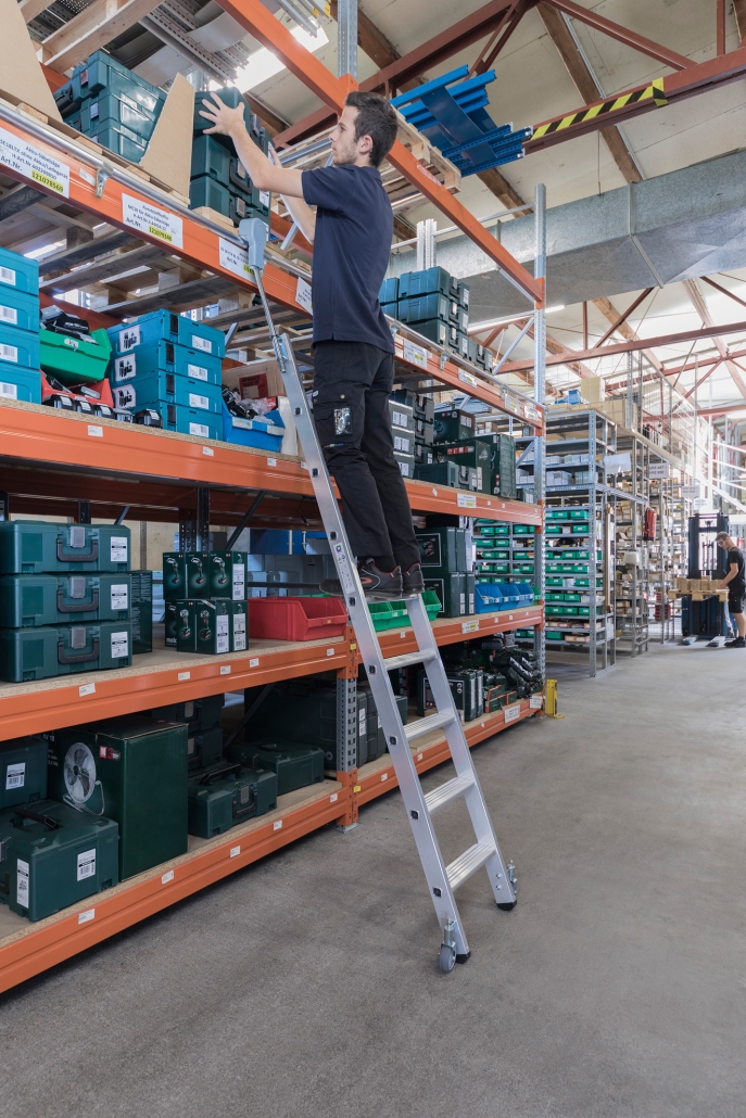 - hochwertige Industrie-Regalleiter aus Aluminium mit stabilen Holmen aus Rechteckrohr