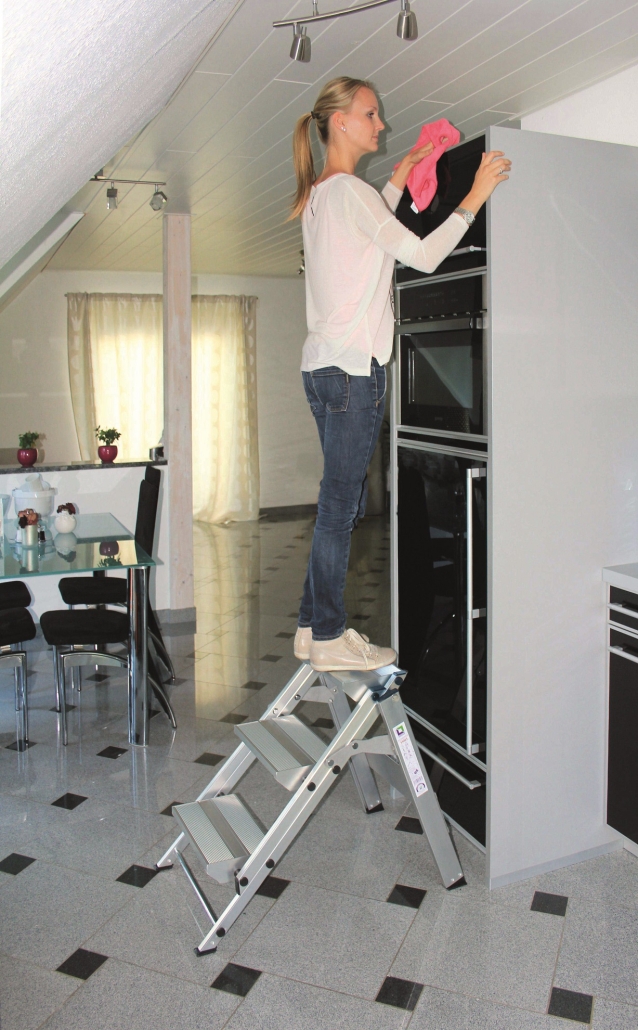 - tiefe Stufen und große Trittfläche mit Riffelung für mehr Standsicherheit